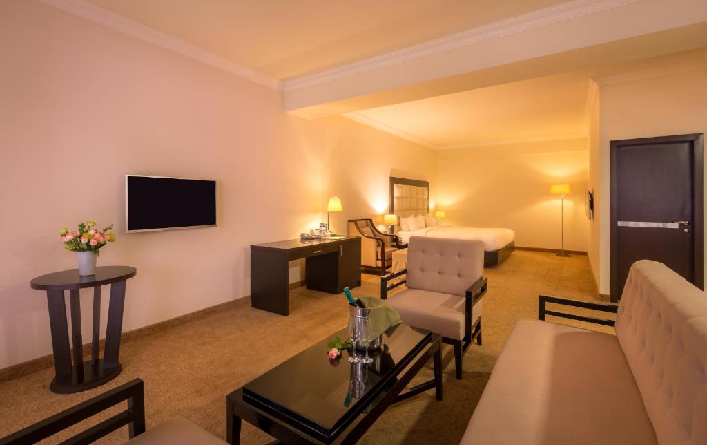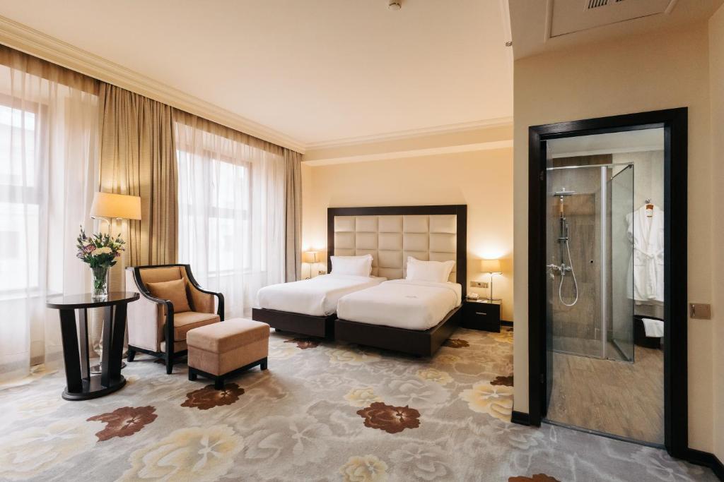 At Paris Hotel Yerevan, guests can choose from a variety of thoughtfully designed rooms to suit their preferences and needs. The Standard Double and Twin Rooms, each spanning 25 square meters, offer comfortable spaces ideal for travelers seeking a cozy yet functional stay. For those desiring a more spacious retreat, the King Deluxe Non-Smoking and Deluxe Twin Rooms provide 35 square meters of comfort, perfect for relaxing after a day exploring Yerevan. For an elevated experience, the Suite Balcony and Suite with View, both measuring 75 square meters, offer expansive living areas complemented by stunning vistas of the city, making them perfect for special occasions or memorable getaways. Families or groups traveling together will appreciate the generous 75-square-meter Family Room, designed to accommodate larger parties comfortably.