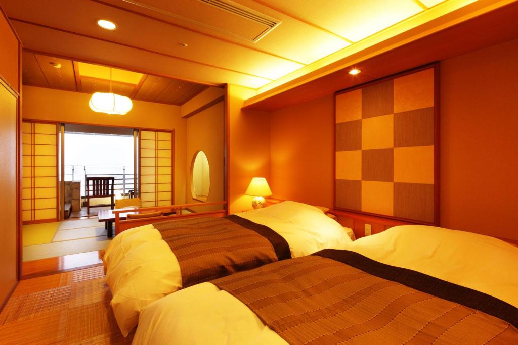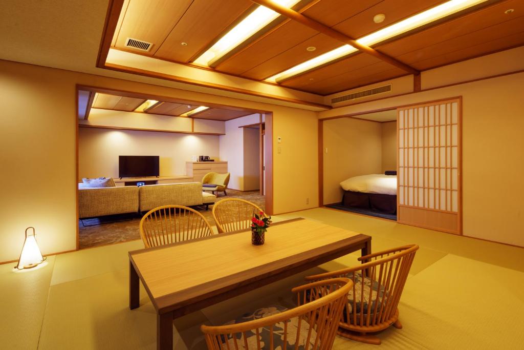 Immerse yourself in the serene beauty of traditional Japan at Shiratamano Yu Senkei. With its authentic Japanese style standard rooms, you can experience the true essence of Japanese hospitality. These cozy rooms, spanning 18 square meters, are adorned with elegant Japanese decor and feature 1 Japanese Futon, providing a comfortable and authentic sleeping experience.