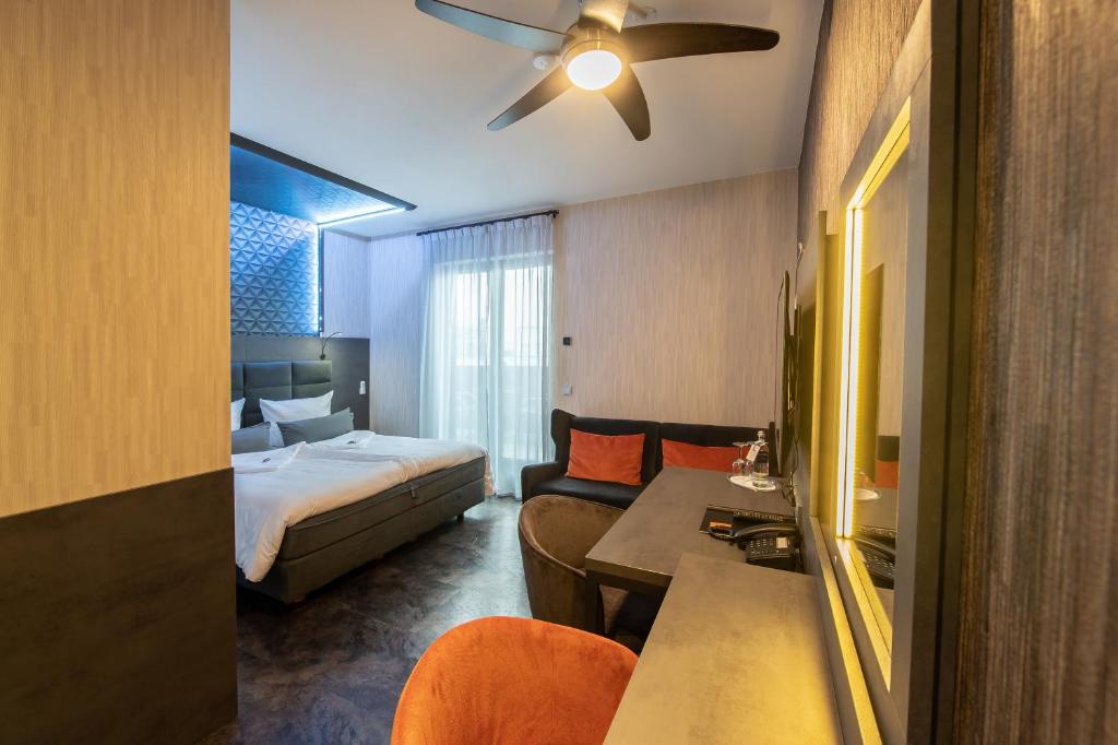 GS Hotel, Münih'te konaklayan misafirlerine konforlu ve pratik bir konaklama deneyimi sunuyor. Odalarda her detay, misafirlerin rahatını ön planda tutacak şekilde tasarlanmıştır. Modern dekorasyonun yanı sıra, odalarda bulunan saç kurutma makinesi, misafirlerin günlük ihtiyaçlarını rahatlıkla karşılamalarına olanak tanır. Ayrıca, kablo ve uydu televizyonu ile günün her saatinde eğlenceli içeriklere ulaşmak mümkün.